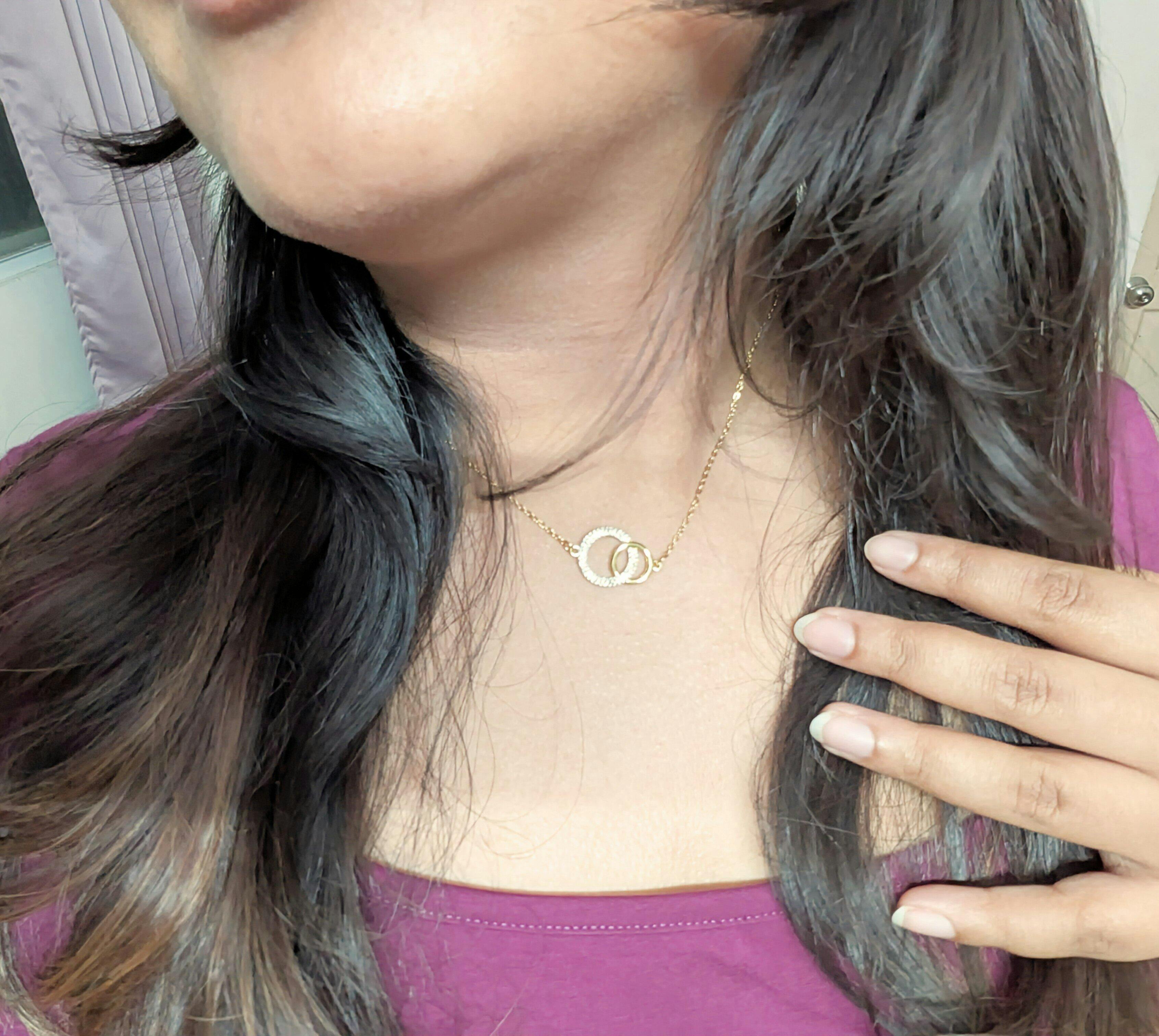 Celebrate connection and unity with the Interwine Ring Necklace, a minimalist and meaningful piece featuring two interlocking rings that symbolize love, eternity, and unbreakable bonds. Designed with elegance and simplicity in mind, this gold plated necklace is perfect for everyday wear or gifting someone special.